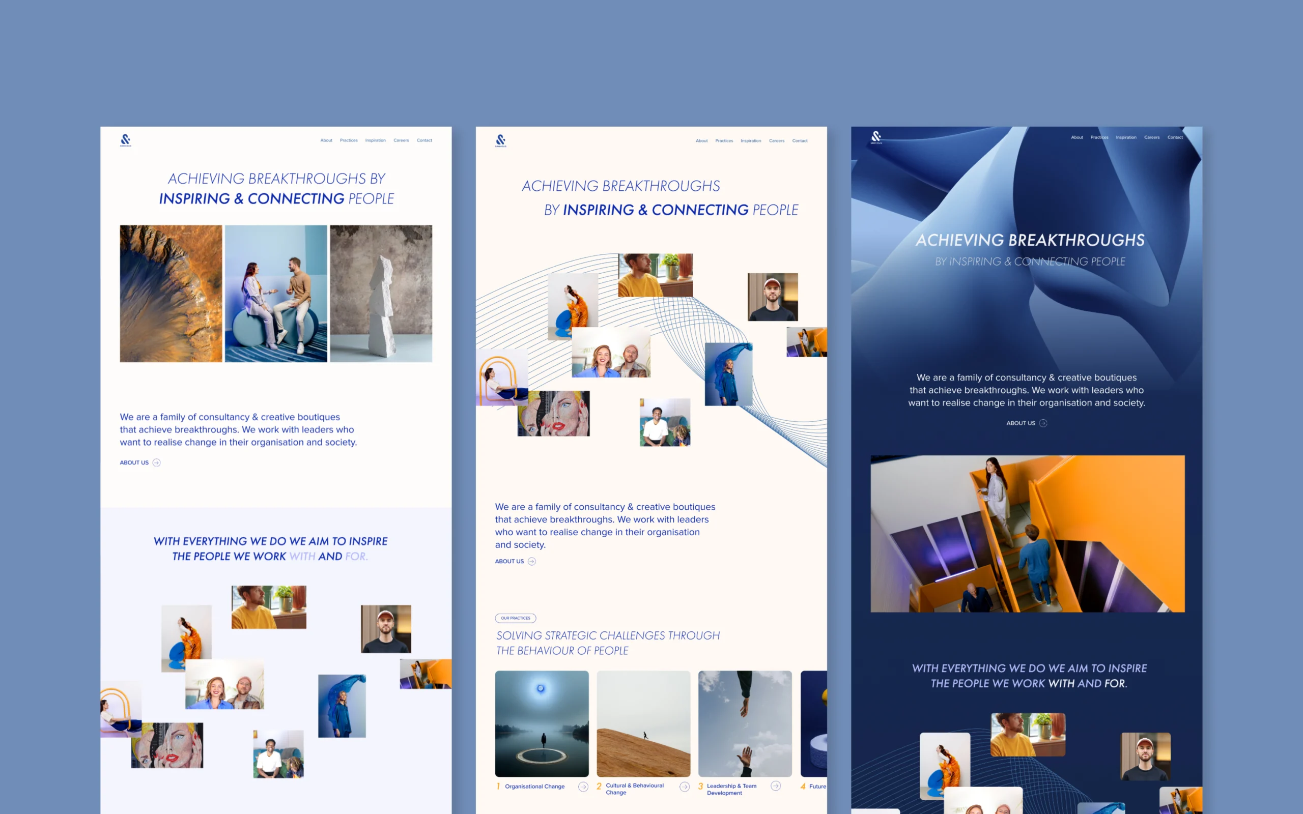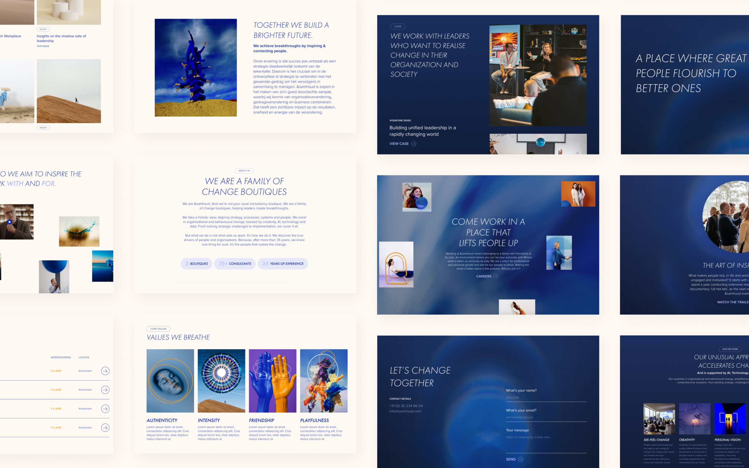 Managing stakeholders and collaborating with Studio Vi for development was a significant aspect of this project. Brainstorming with their creative team on interaction possibilities while maintaining design ownership was really fun. The final product is a website that showcases &samhoud's expertise in creating change. It shows their inspiring, human-oriented approach and reflects their company culture. The new site is functional but also surprises users with unique layouts and surprising interactions, and breathes the core values of &samhoud.