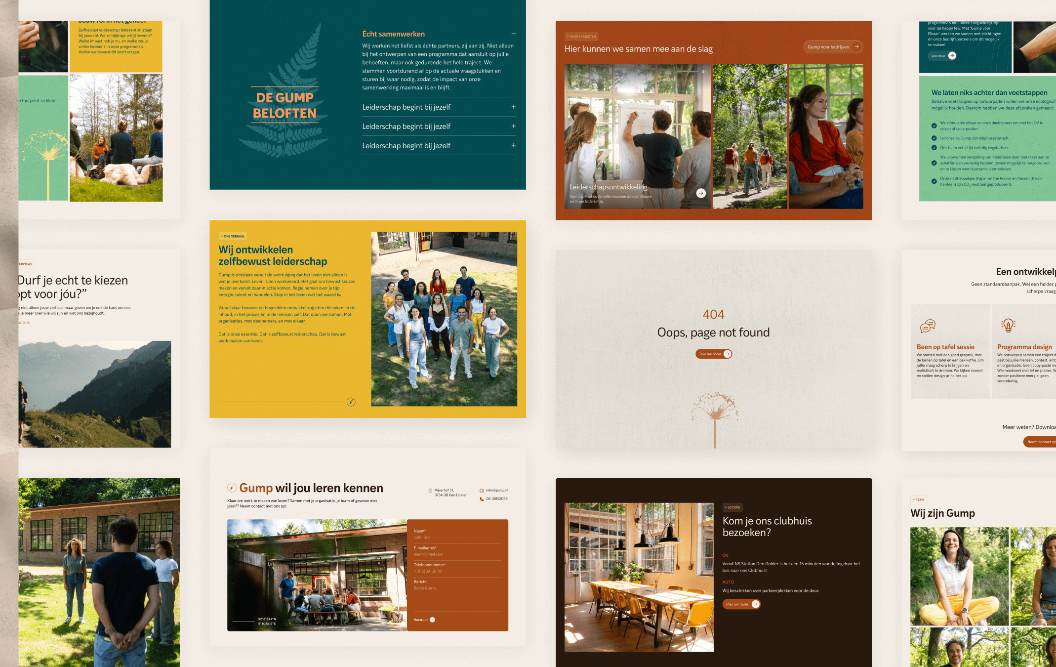 Gump stands for clarity, authenticity, and genuine human development. A strong belief in the power of self-reflection lies at the core of their work. Much of that reflection happens outside traditional office settings, often in nature, where distance creates perspective.Through inspiration sessions with the team, we translated these values into a visual direction that feels calm, grounded, and sincere. Nature elements were subtly integrated into the design to reflect their way of working and thinking. The use of space, restrained typography, and balanced composition reinforces a sense of depth and focus.